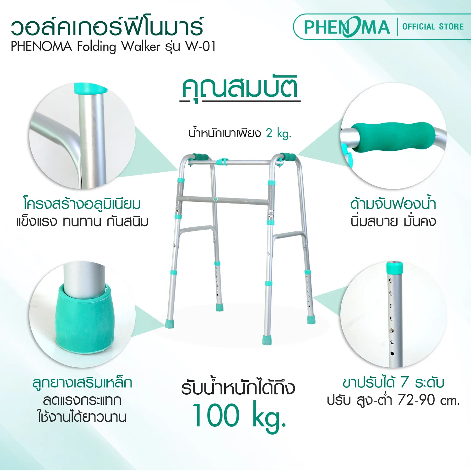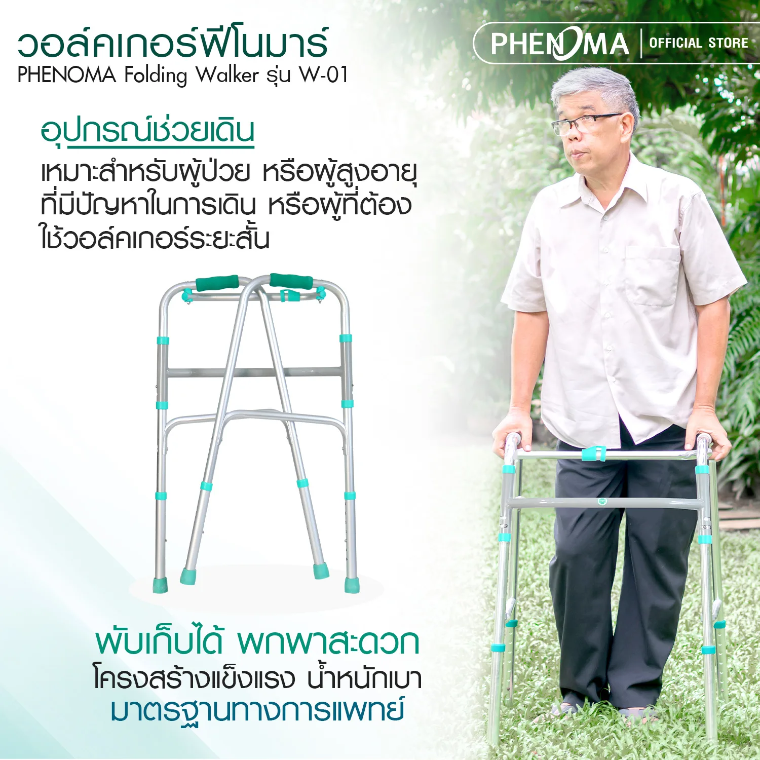 - PHENOMA Folding walker รุ่น PWC-01 พับเก็บได้ พกพาสะดวก โครงสร้างแข็งแรง น้ำหนักเบา มาตราฐานการแพทย์ (สินค้าประกอบสำเร็จรูปมาแล้ว)