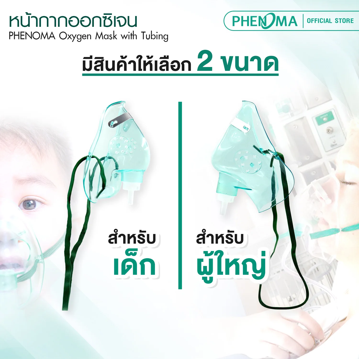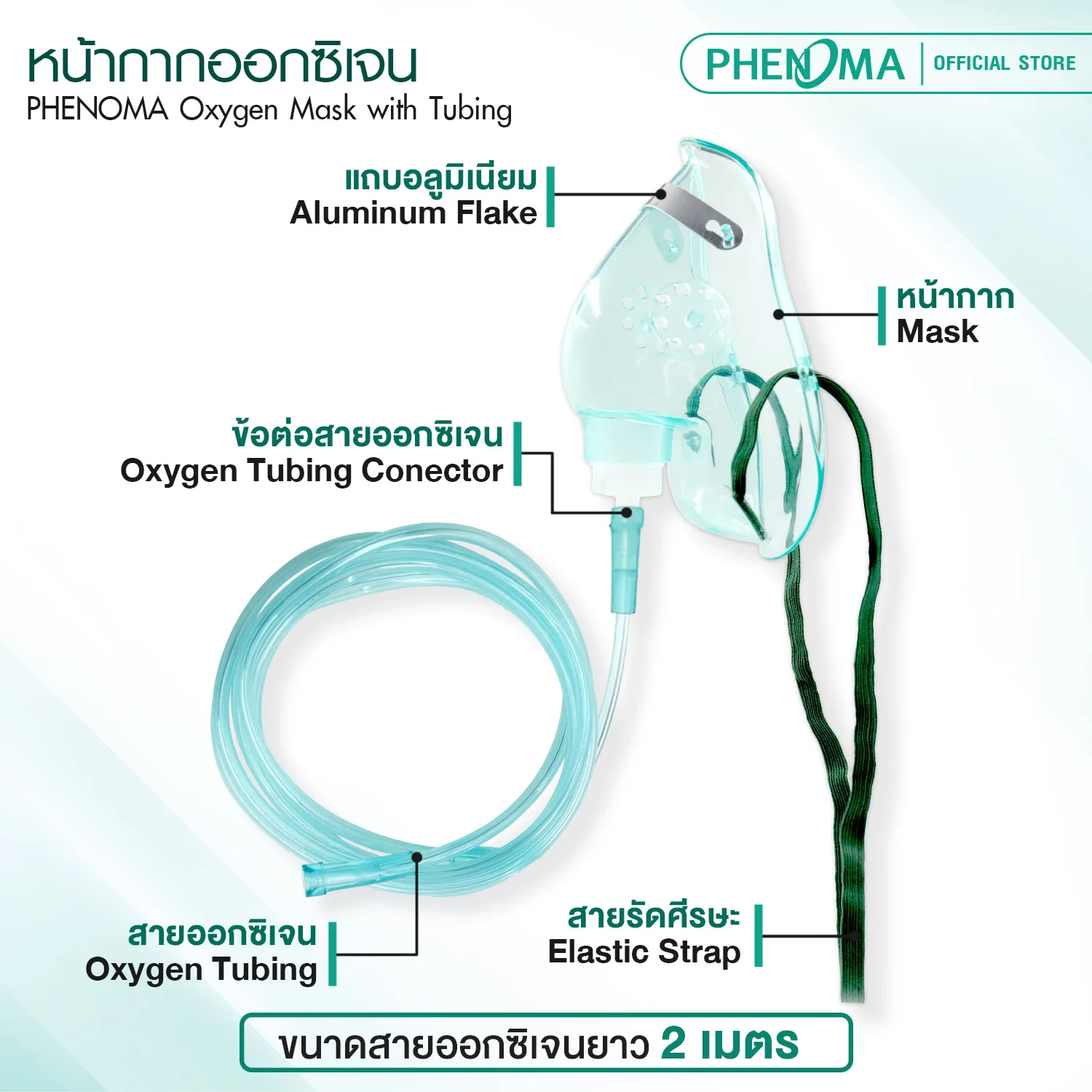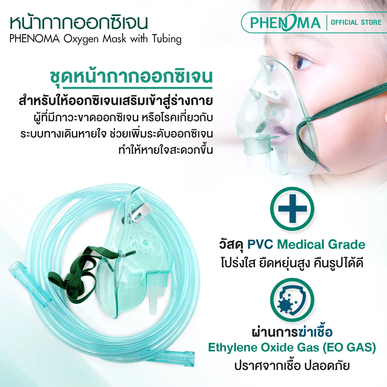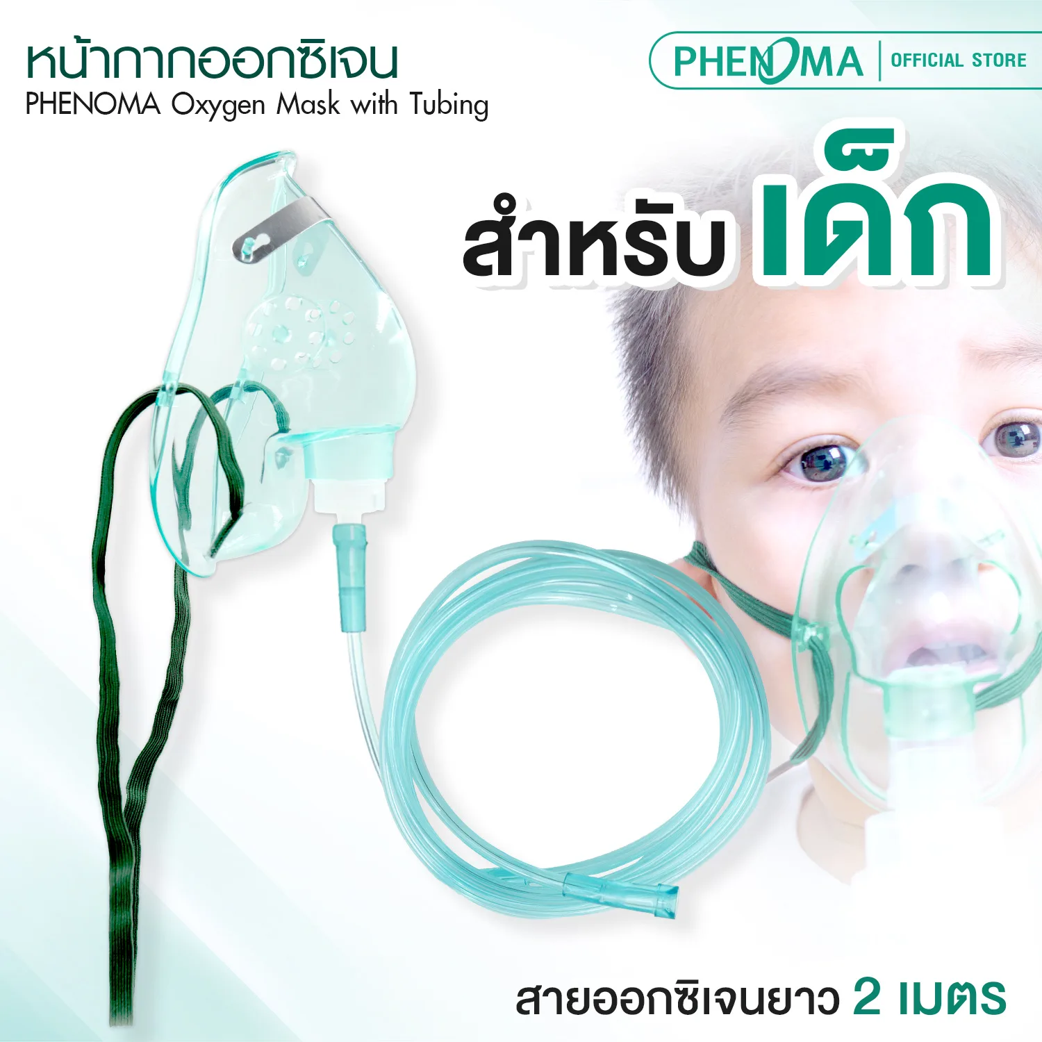 หน้ากากออกซิเจน PHENOMA เด็ก-ผู้ใหญ่ Oxygen Mask + พร้อมสายออกซิเจน 2 เมตร วัสดุ PVC เกรดทางการแพทย์ มาตรฐาน อย. ไทย