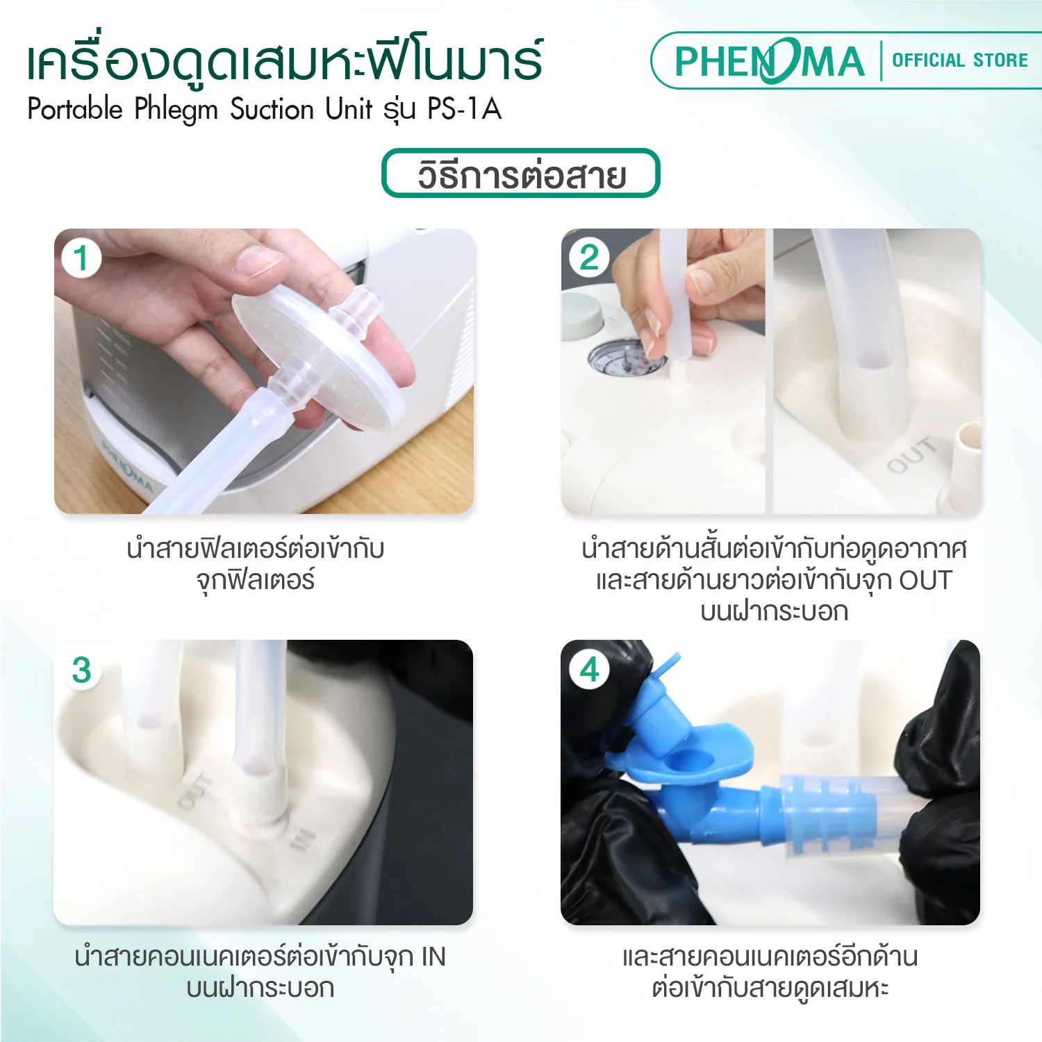 เครื่องดูดเสมหะแบบพกพา PHENOMA รุ่น PS-1A Portable Phlegm Suction Unit