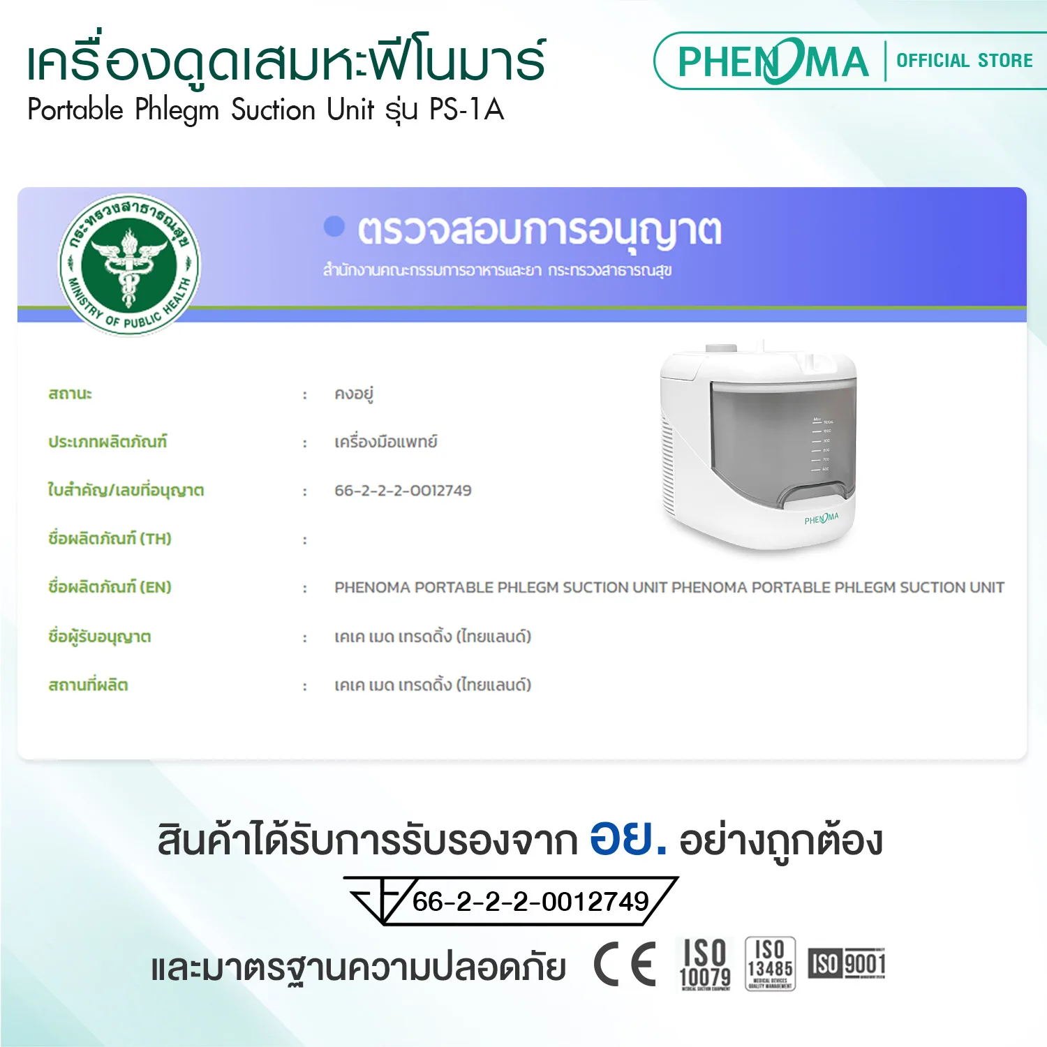 ผ่านการรับรองจากกระทรวงสาธารณสุข และมาตรฐานความปลอดภัยสากล CE | ISO 13485 | ISO 10079 | ISO 9001