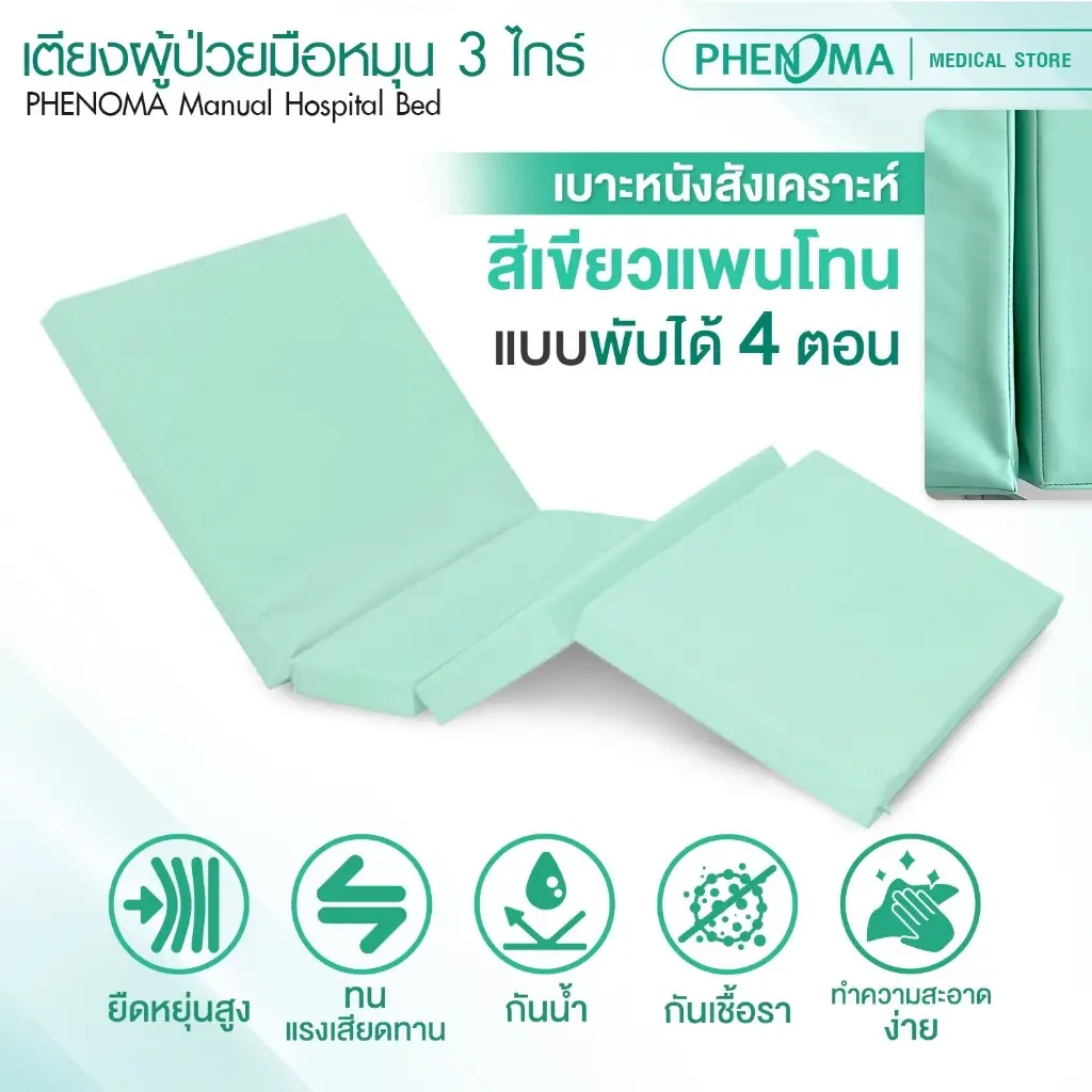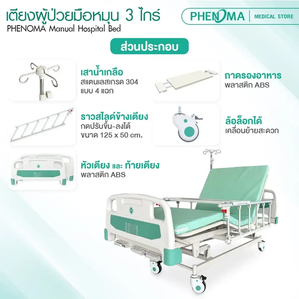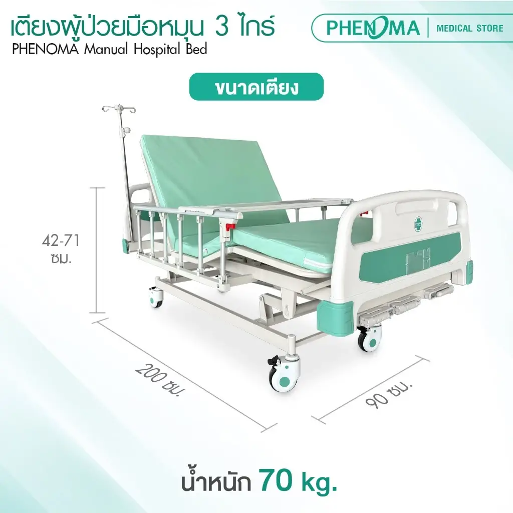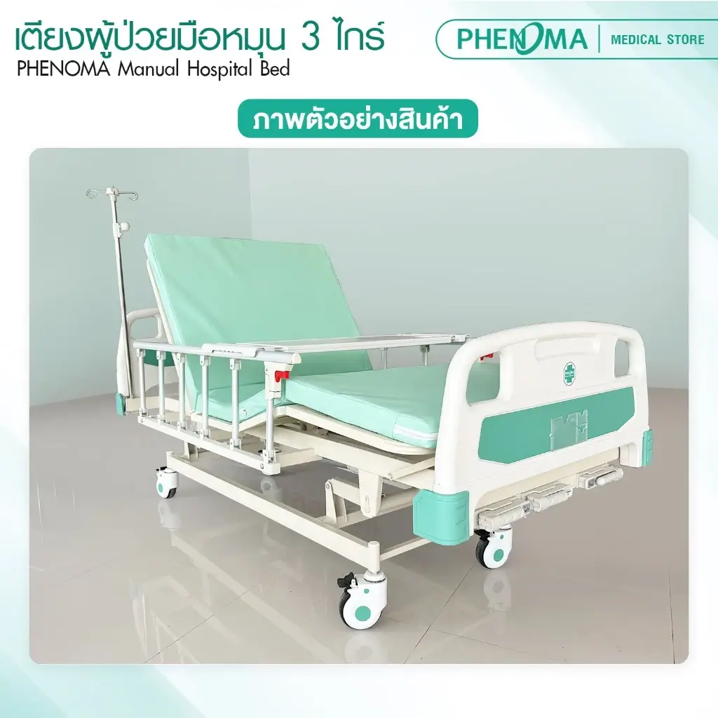เตียงผู้ป่วยมือหมุน 3 ไกร์ มือหมุน PHENOMA รุ่น PHB03-1
