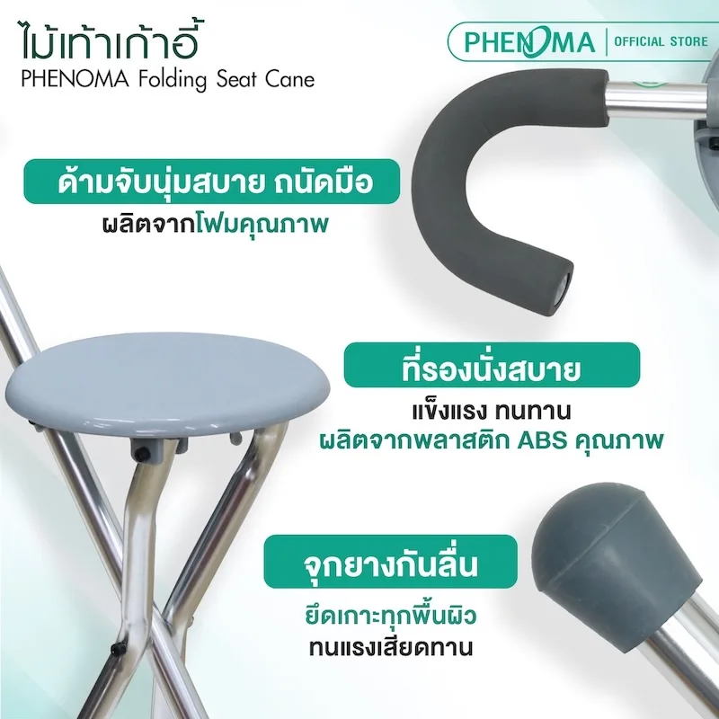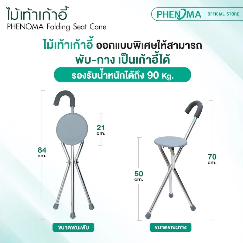 ไม้เท้าเก้าอี้พับได้ PHENOMA Folding Seat Cane 2 in 1 รองรับน้ำหนักได้ 90 kg.