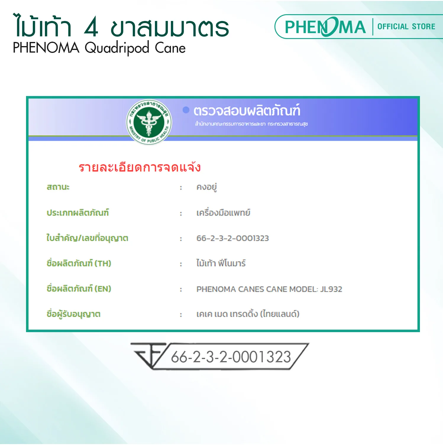 ไม้เท้า4ขา สมมาตร PHENOMA Quadripod Cane รุ่น PWC-03-1